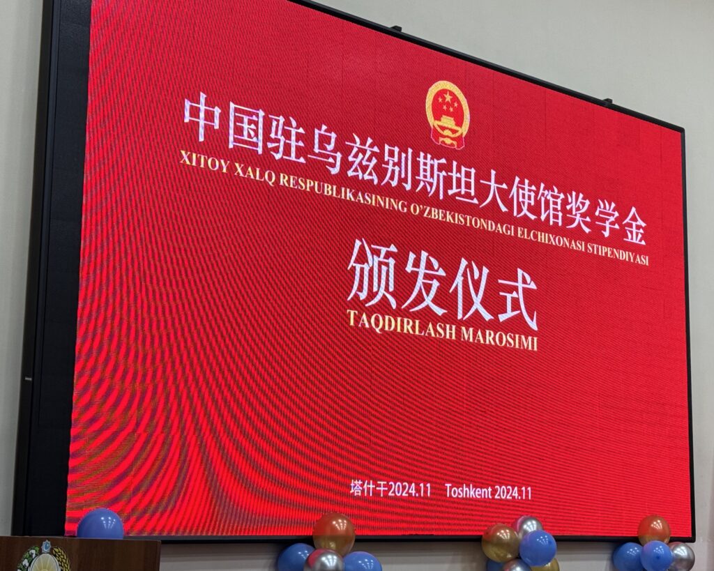 2024 йил 30 ноябрь куни Хитой Халк Республикасининг Ўзбекистондаги элчихонаси ташаббуси билан иқтидорли ёшлар учун ташкил этилган “Хитой Халқ Республикасининг Ўзбекистондаги элчихонаси стипендияси” дастурининг тақдирлаш маросими бўлиб ўтди.